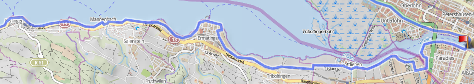 The ride from Konstanz to Berlingen is really nice. Heading out of Konstanz, you ride out directly on the shore of the Rhine, where the roads are really wide and the traffic is really light. There is a diversion to cross the border into Switzerland and then at Tägerwill, there is a really nice area to hang out by the lake (We made lots of stops to break up the tediousness of riding and to keep the kids happy. My wife's motto is to stop early and frequently. If you wait to stop till the kids start complaining, you've already lost) Then there are uninteresting stretches on dusty roads through farmland, but also jaunts through small swiss towns with really great modernist houses. I was really impressed with the adventurousness of the architecture. German towns are much more dressed down.